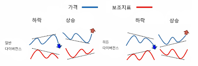 - 일반 다이버전스가 나타나면 추세 전환의 가능성이 있다.