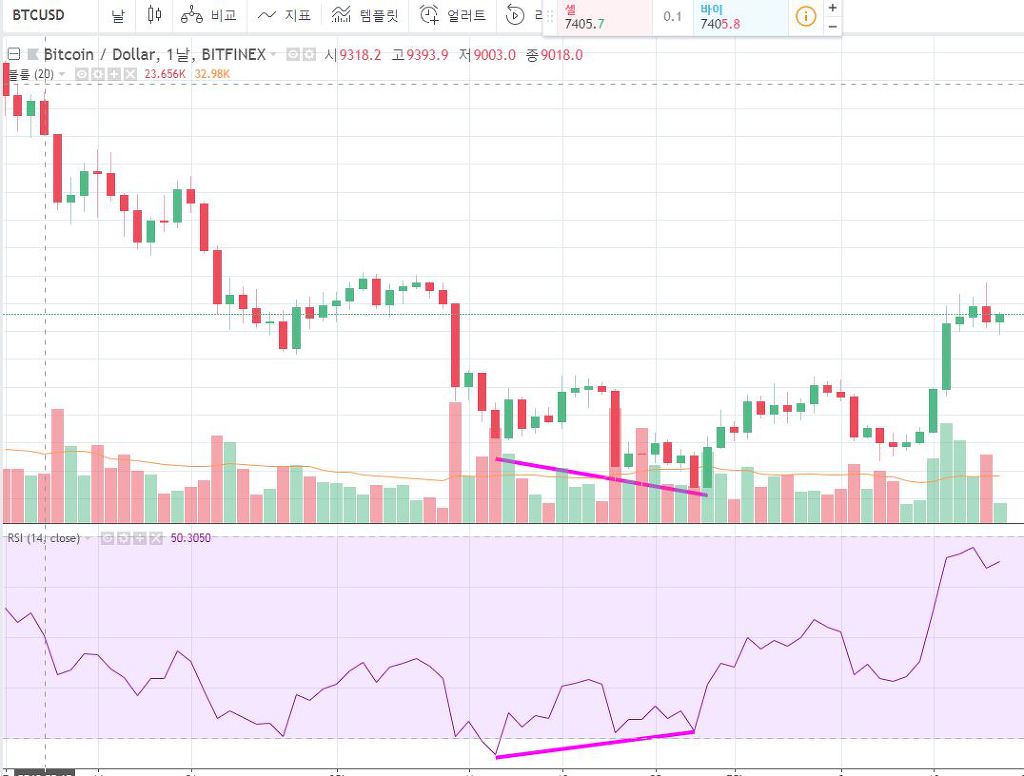 저점은 계속 하락하였지만 지표는 상승하였습니다.